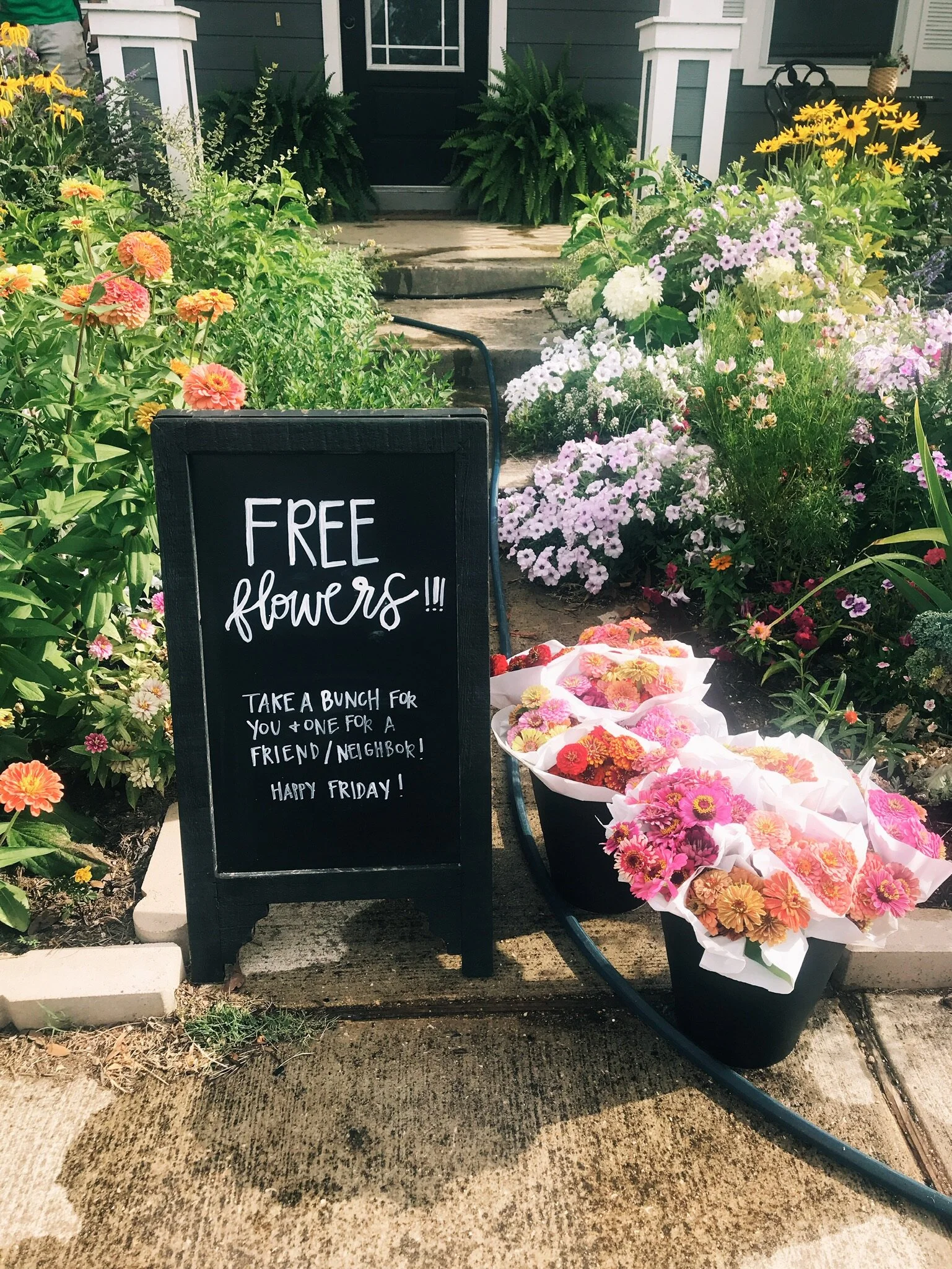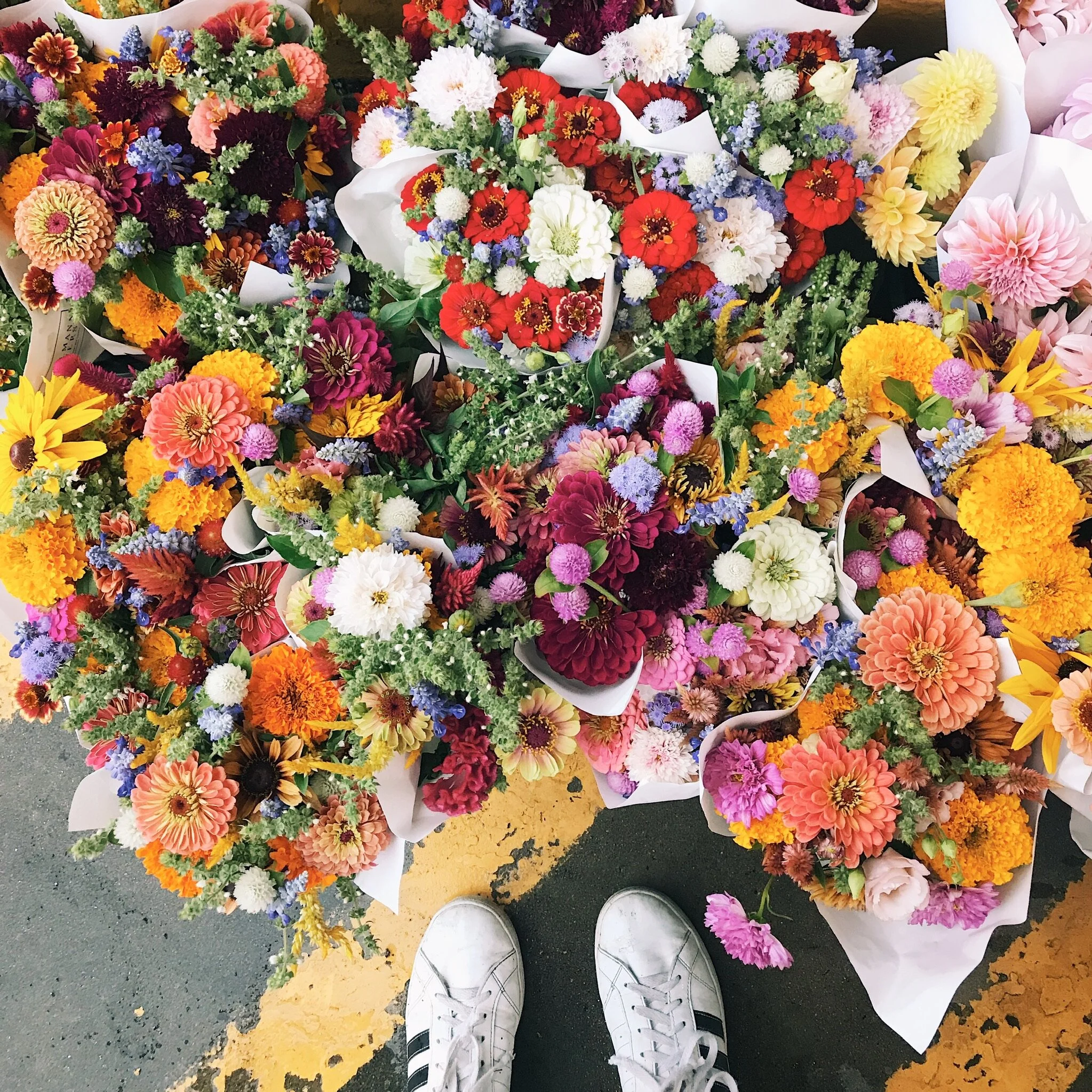 When we have too many flowers to sell or a bucket passes their prime before we sell them, we bunch them up and set it outside our house with a “free flowers” sign for the neighbors. I post on the Nextdoor App and they’re gone, it makes me so happy. Speaking of apps, we started making TikToks (LOL who are we??) and it’s honestly been so much fun. You’ll probably want to follow that.